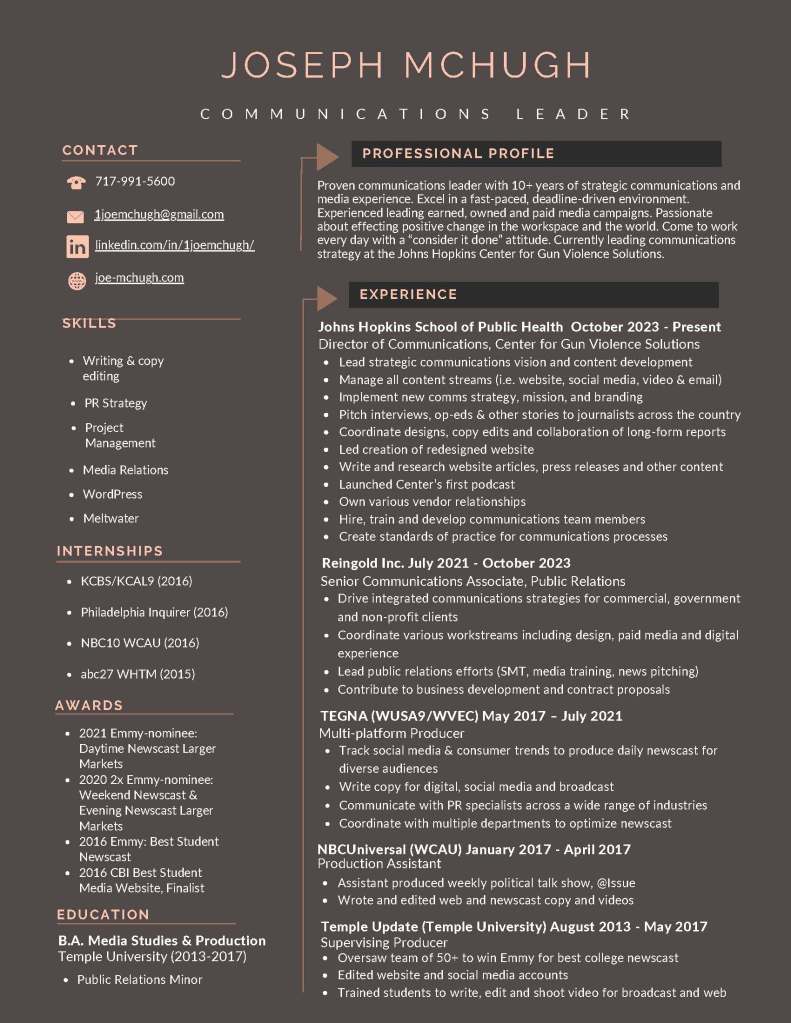 Joe McHugh is an Emmy-award-winning news producer turned communications pro. Today, he’s a proven leader in public relations, media, and content strategy working as the Director of Communications for the Johns Hopkins Center for Gun Violence Solutions at the Bloomberg School of Public Health. His career has been guided by a passion for making a tangible impact. His experience working as a comms director, PR lead, in the news media and for various clients makes him adept at tackling any big project. His peers recognize him for staying calm in the face of chaos to get the job done. Joe is always ready to take on the next challenge with a consider-it-done attitude.